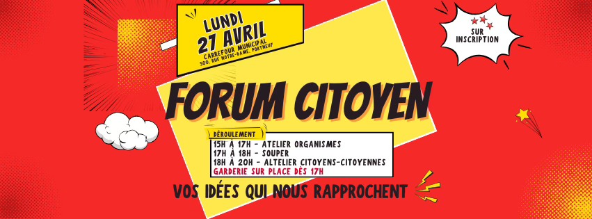 Prochaine étape : coconstruire ces idées ensemble! Le forum citoyen du 27 avril sera l'occasion pour les citoyens, citoyennes et les organismes de se rassembler pour discuter, bonifier et imaginer comment donner vie à ces projets.