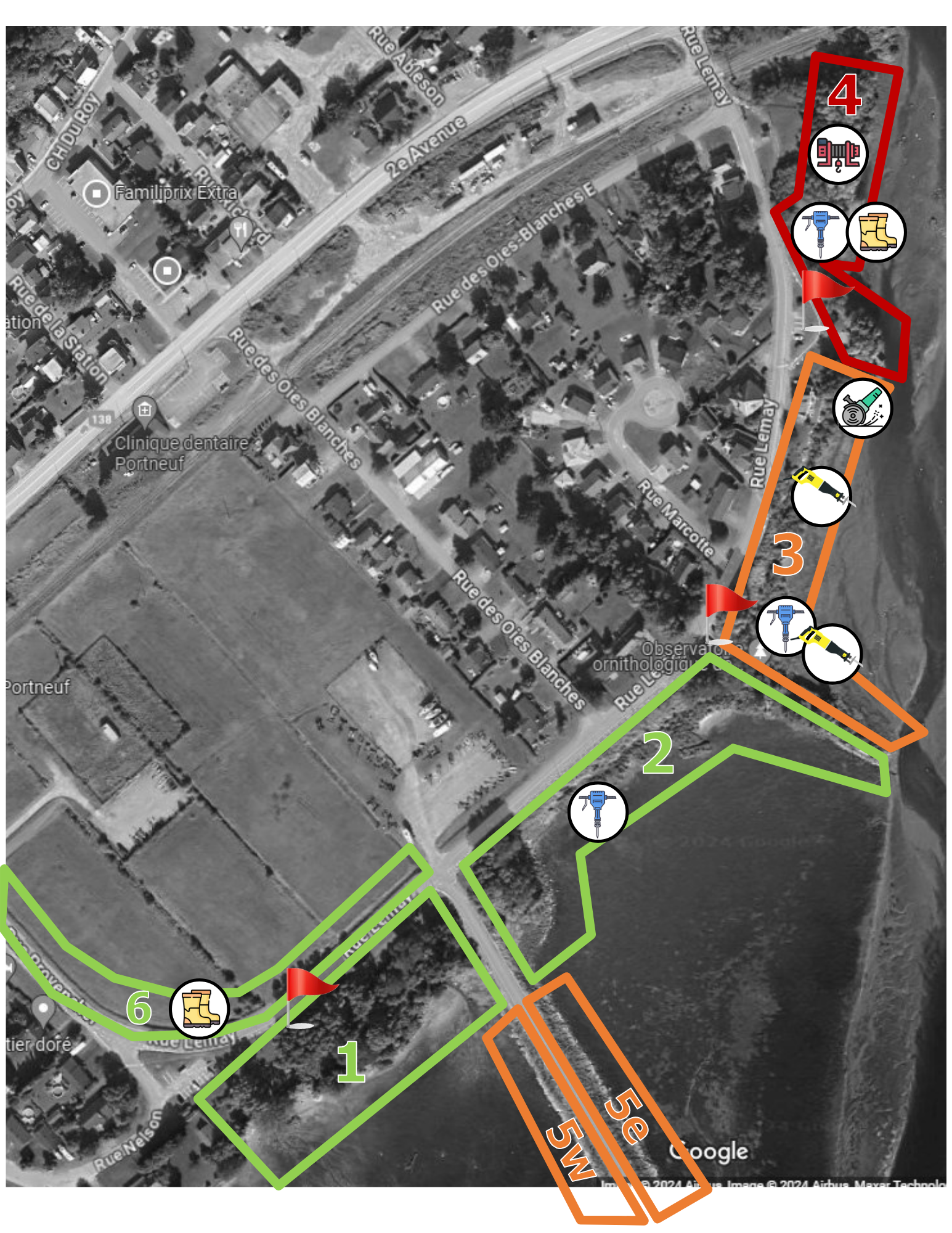 Icônes = emplacement de travaux spécifique.