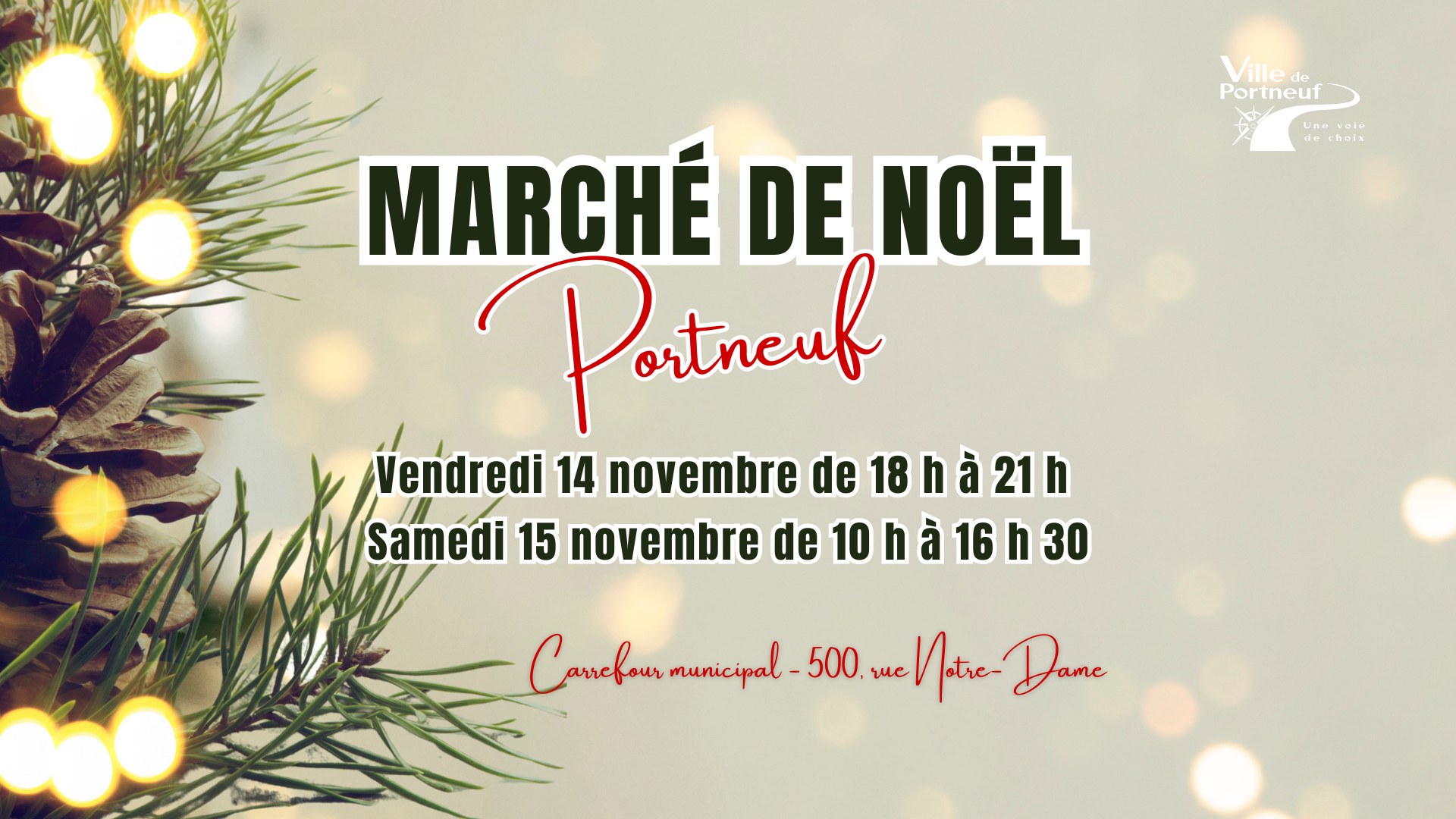 Le vendredi 14 novembre de 18 h à 21 h et le samedi 15 novembre de 10 h à 16 h 30, rendez-vous à la 3e édition du Marché de Noël de Portneuf. Cet événement rassemblera plus de 35 artistes et artisans, de la région et d'ailleurs. Ces créateurs vous proposeront une variété de produits qui sauront plaire à tous.