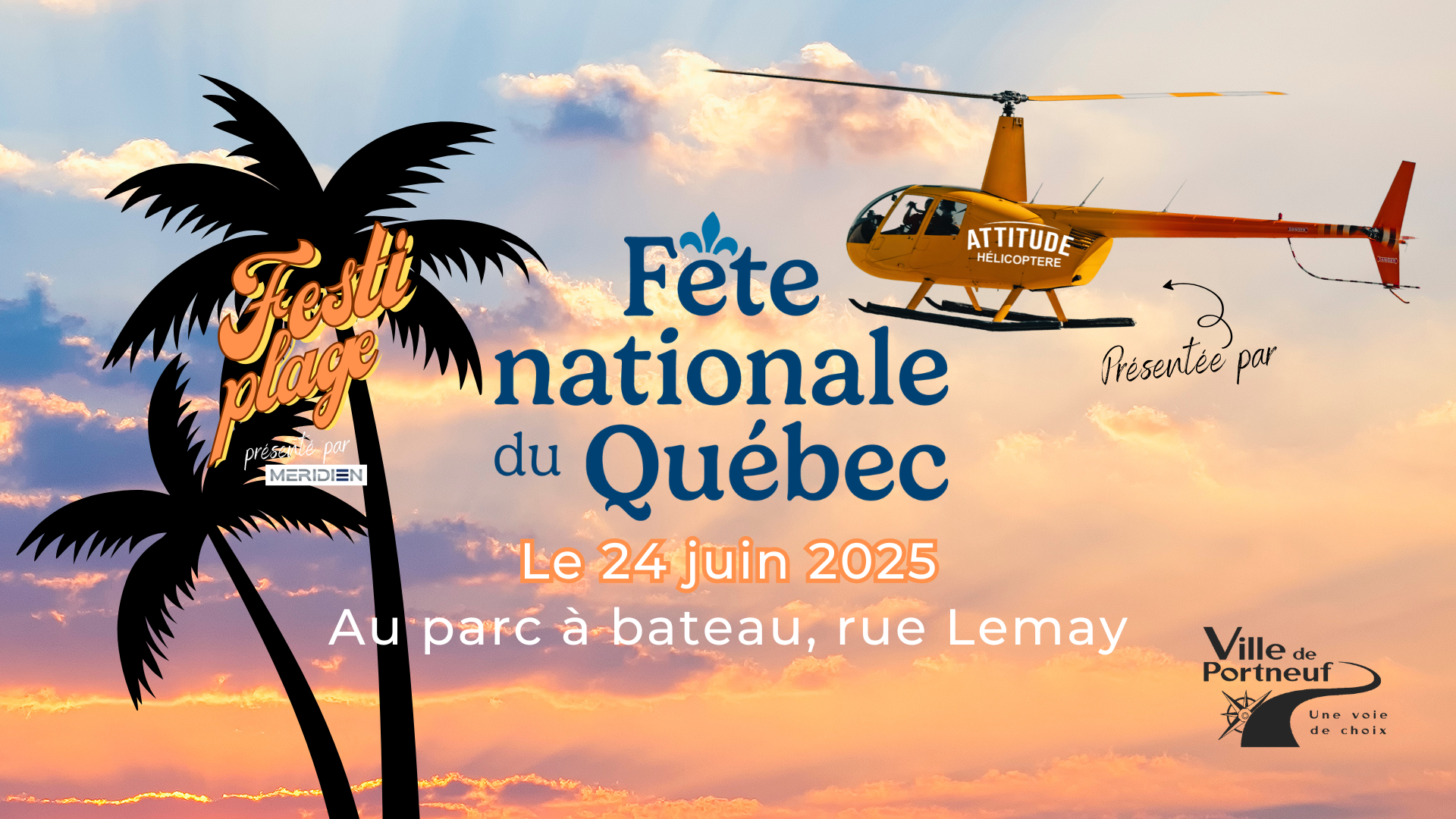 La population est invitée à célébrer fièrement la culture québécoise dans une atmosphère festive et familiale. Rendez-vous dès 14 h au Parc à bateaux, sur la rue Lemay, pour une journée d'activités gratuites qui plairont aux petits comme aux grands. Tours d'hélicoptères ($),festif plage, chansonniers, jeux libres et plus encore.