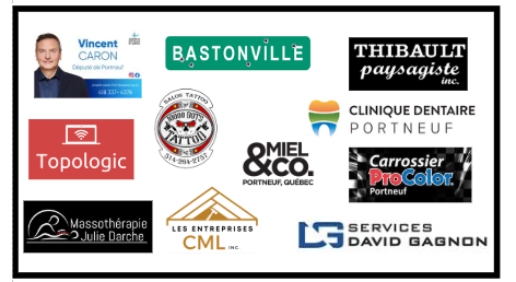 Imprimerie Germain, La Grange sportive, Cabanon Portneuf, Sélection du Pâtissier (Hafner), Laine & Tricopines, Éric Lortie arpenteur géometre, Patrick Roy Potier, Frenette Bicyclettes, Machitech & Golf Grand Portneuf, Esthétique Vicky Gauthier, Boucherie Godin, Aliments Portneuf SENC, Rôtisseries Fusée & Chocolato Donnacona, Boucherie des chefs,Coiffure Vanessa et Freneco.